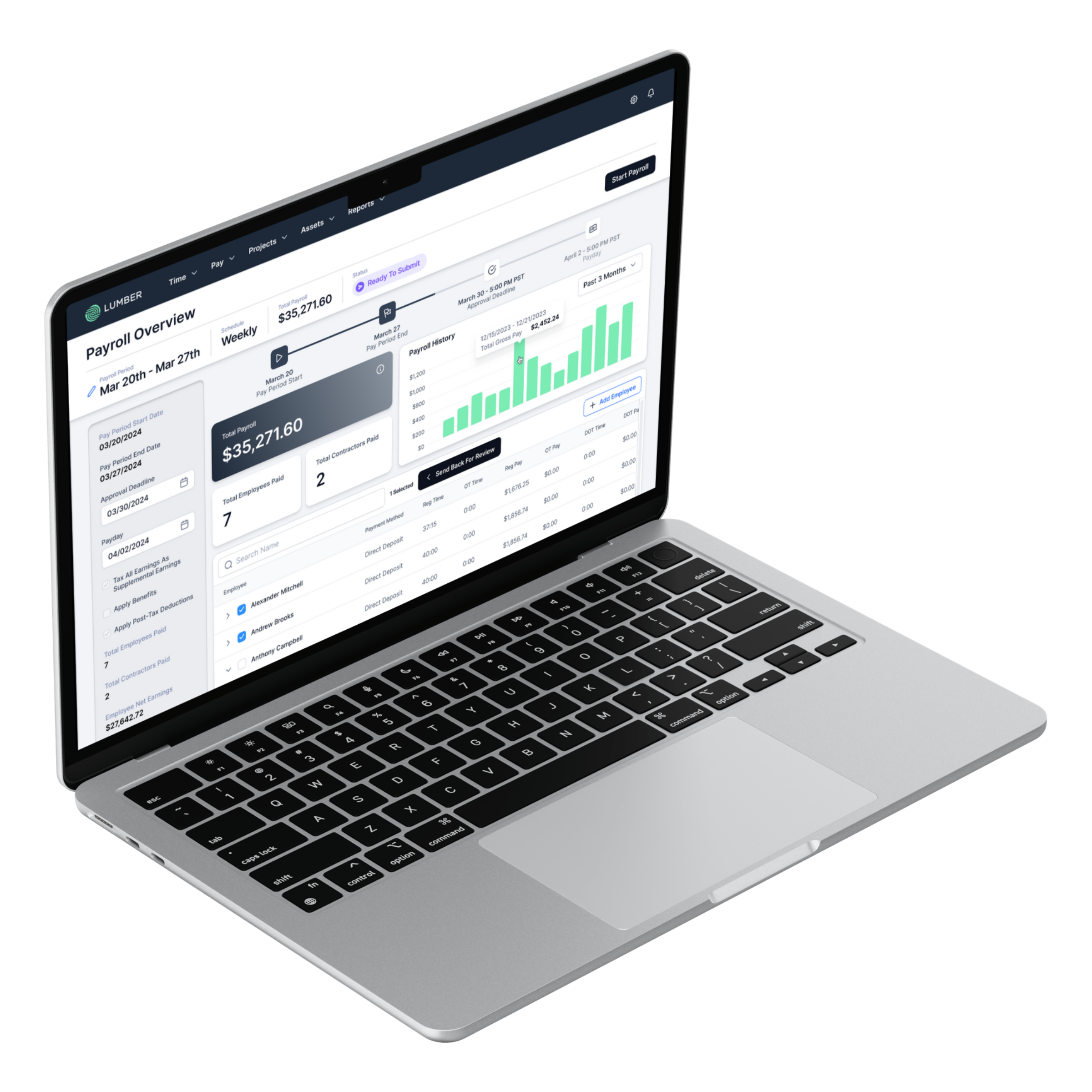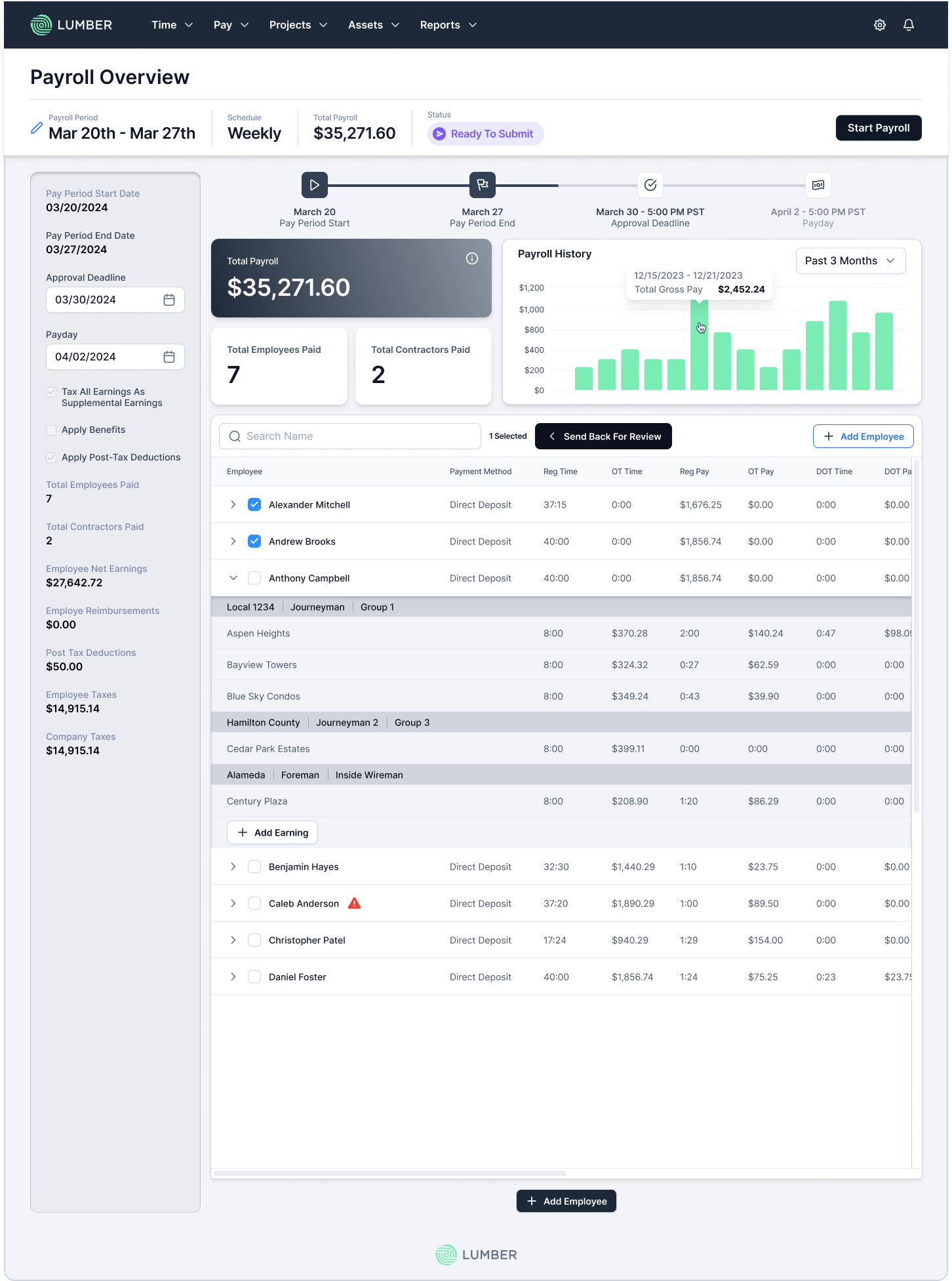 Lumber is a payroll and workforce management platform built specifically for construction. Unlike general-purpose payroll tools that require workarounds for construction-specific needs, Lumber handles the complexity of construction payroll from the ground up.