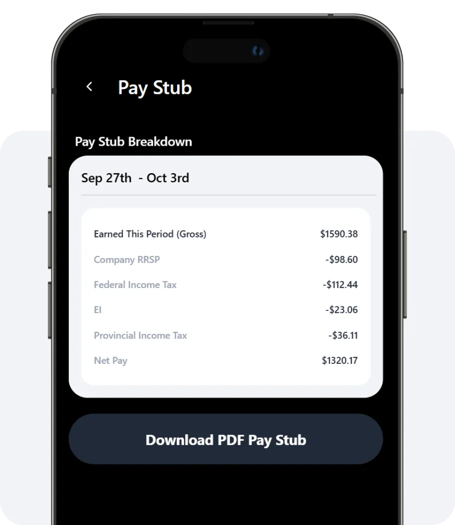 Employees can log in to the Lumber mobile app to instantly view and download paystubs. No more waiting for paper copies.